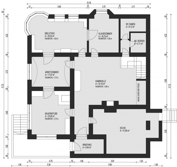 Der Empfangsbereich des Museum, die Kaminhalle, ist ein kleiner Saal, der ideal für kleine Events mit bis zu 30 Personen ist. Die wunderschöne Bibliothek bietet Platz für 20 Personen und im Klavierzimmer kann man mit zehn Personen sehr intim feiern. Bauernstube und Arbeitszimmer bieten Platz für insgesamt 30 Personen.